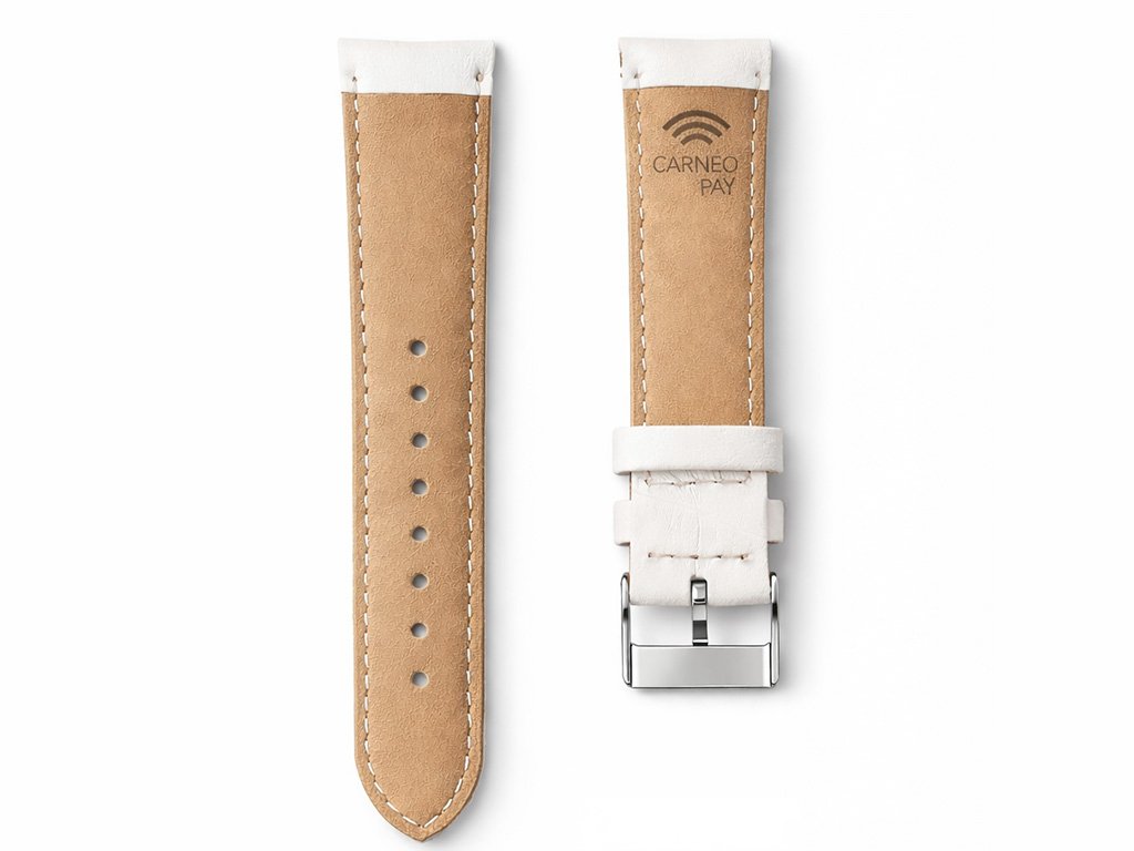 Platobný remienok Carneo Pay, biela koža, 20 mm